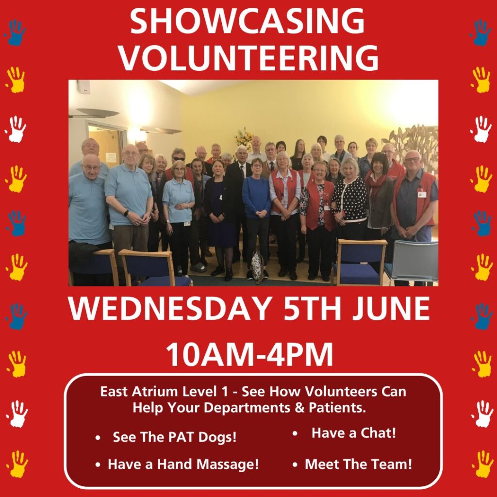 Our Showcasing Volunteers event will be hosted in the East Atrium, level 1 on Wednesday 5 June, 10am – 4pm .