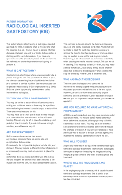 British Society of Interventional Radiology BSIR information leaflet for patients undergoing radiological inserted gastrostomy RIG .