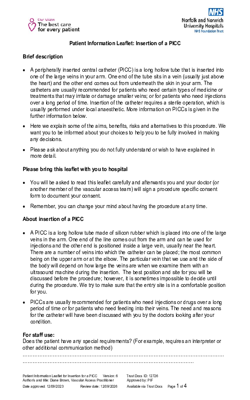 Information leaflet for patients having a PICC line insertion pre-consent Version 6